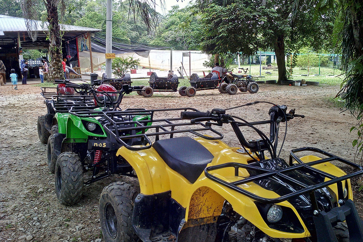 The resort of the 20-acre grounds are dedicated to a jungle walk with dinosaur statues, and extreme park activities including paintball, ATV-riding and archery. A restaurant on the premises serves cuisine made from ostrich meat, including satay. Open daily from morning till evening, a ticket fee is charged.