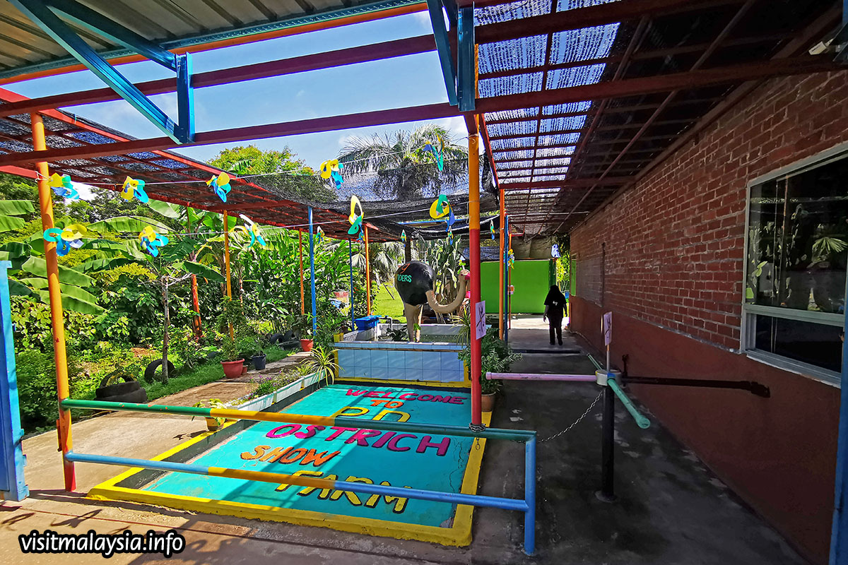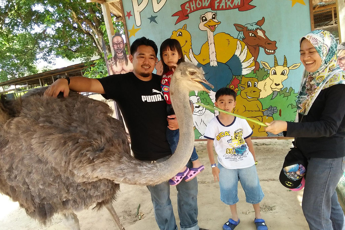 PD Ostrich Farm is a tourist attraction located at 9th mile along the main road, located near Pantai Purnama. The farm breeds and displays a large collection of ostriches with opportunities to feed, photograph and even race with them. The farm also has a petting zoo with domestic pets and farm animals, an interactive section with pedigree dogs and pony or horse-riding.