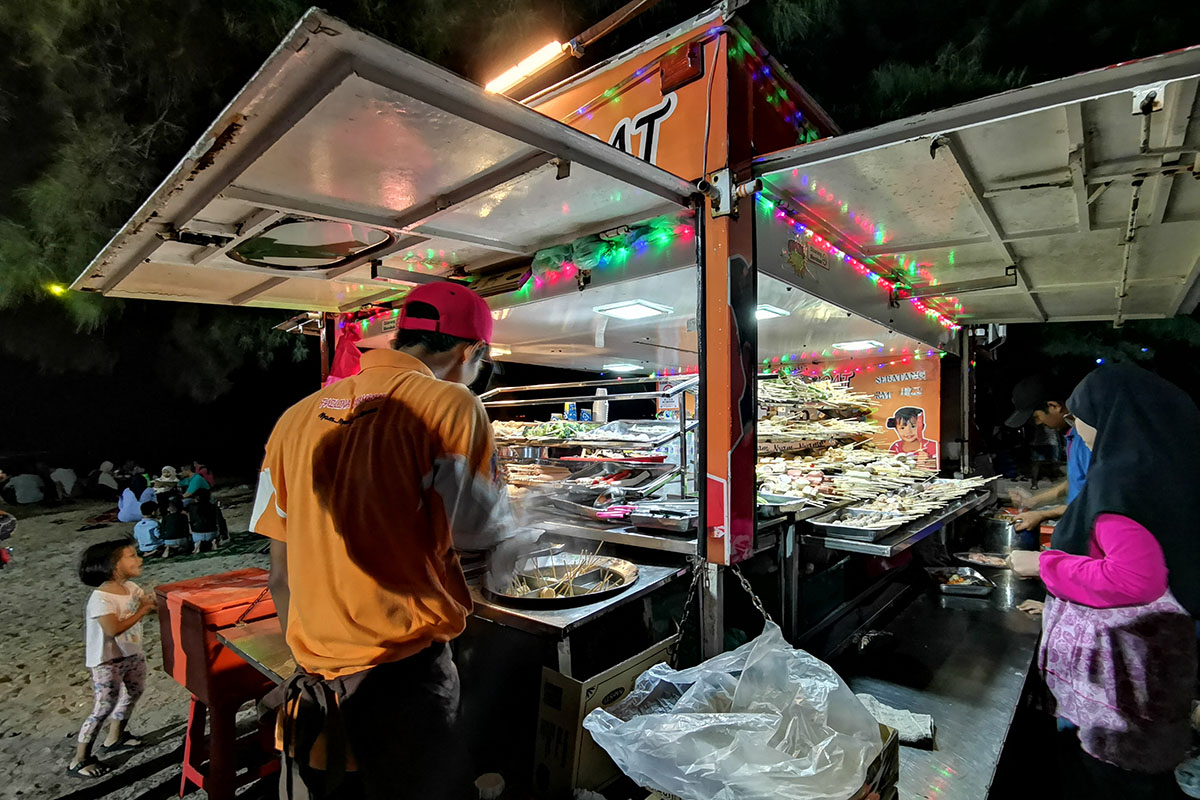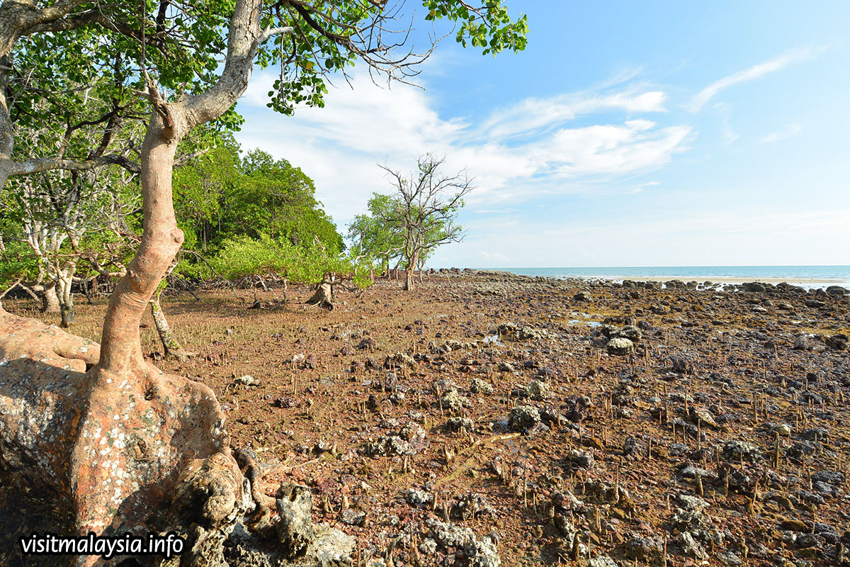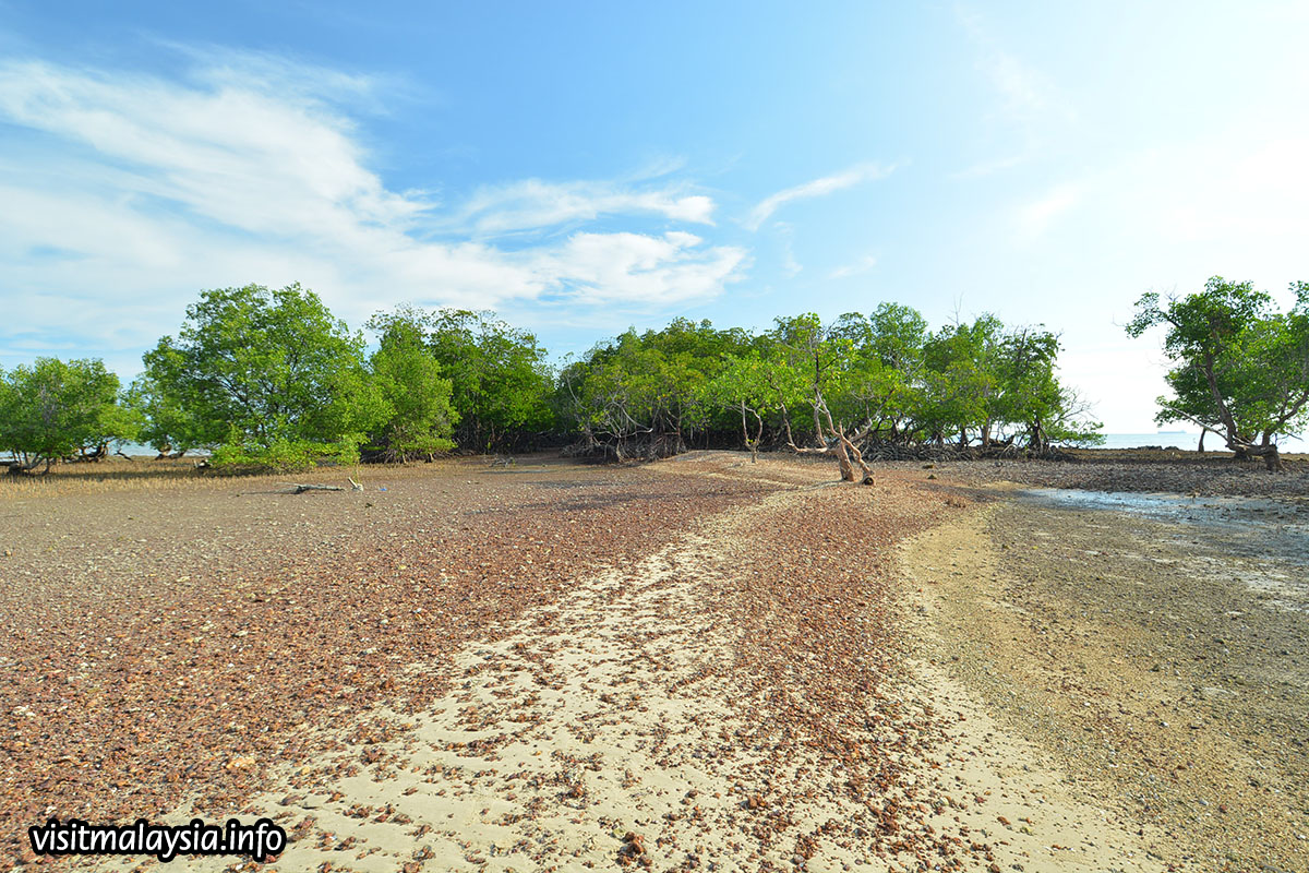 At center portion, a small island populated by a dense cluster of mangrove trees can be reached on foot at low tide; this when local fishermen rummage the islet's shoreline for clams and crabs. Bagan Pinang also offers delicious culinary opportunities, including food trucks and restaurants along the main road that serve street-style seafood cuisine.