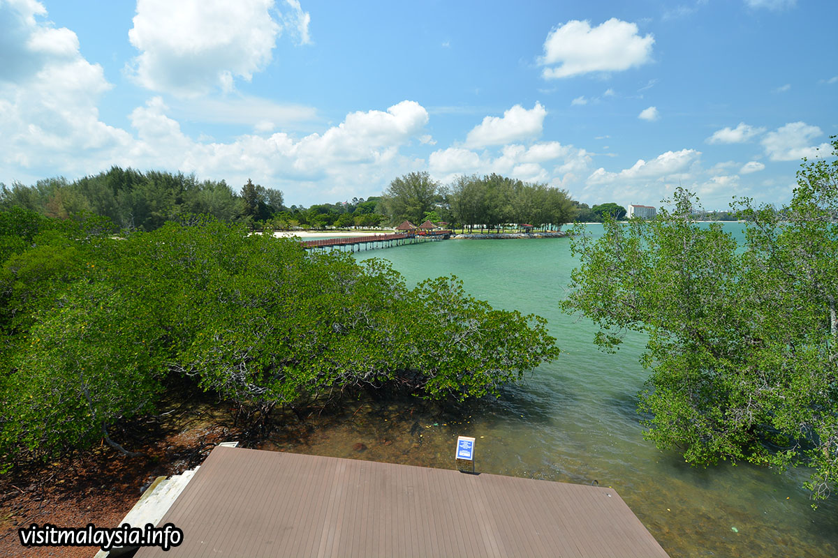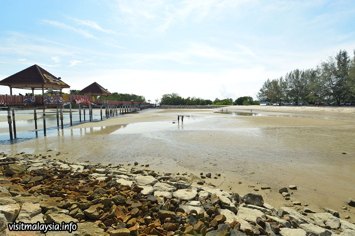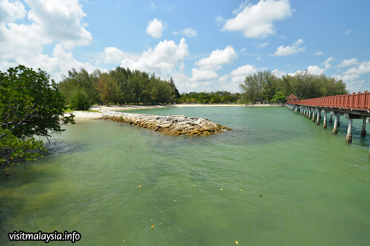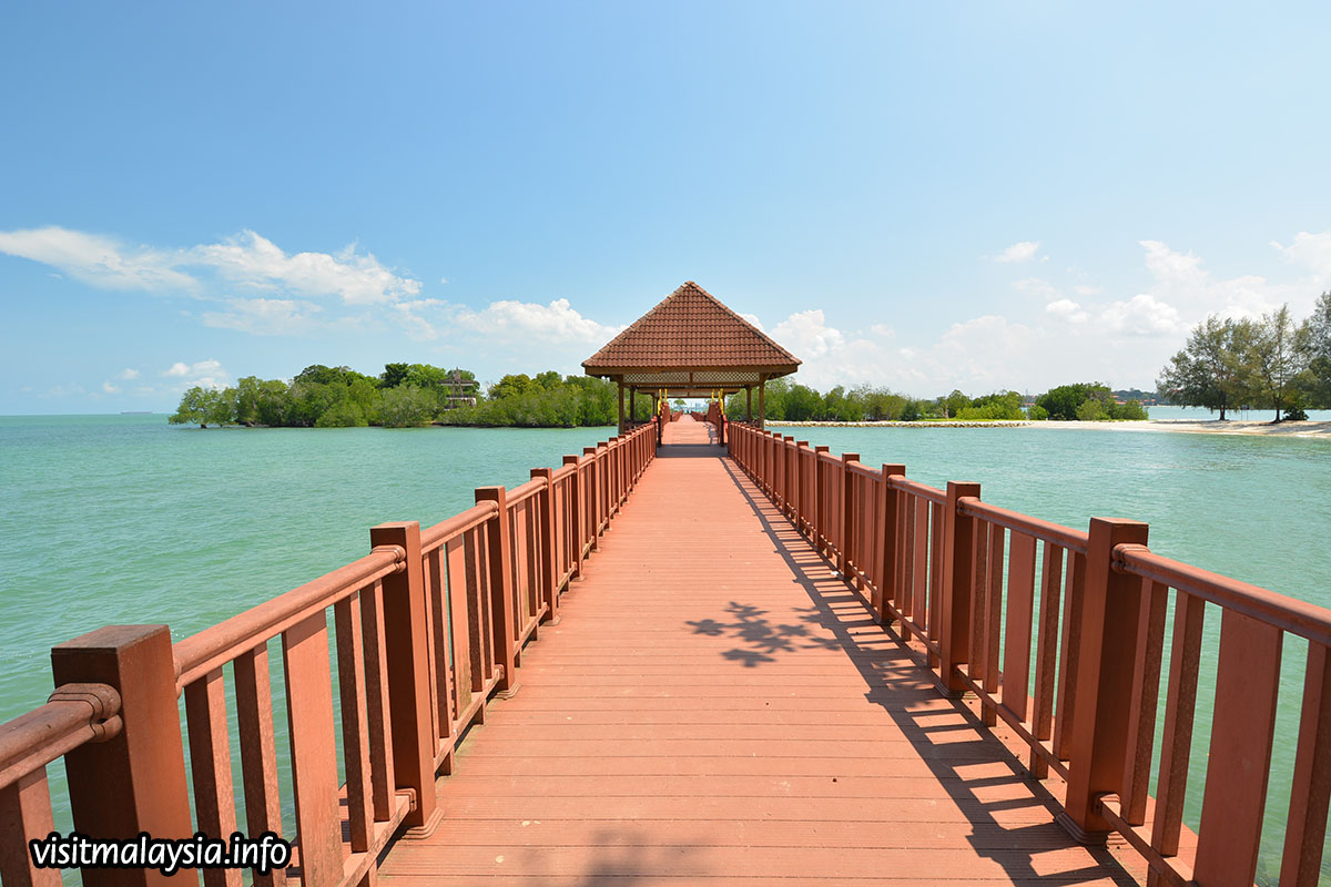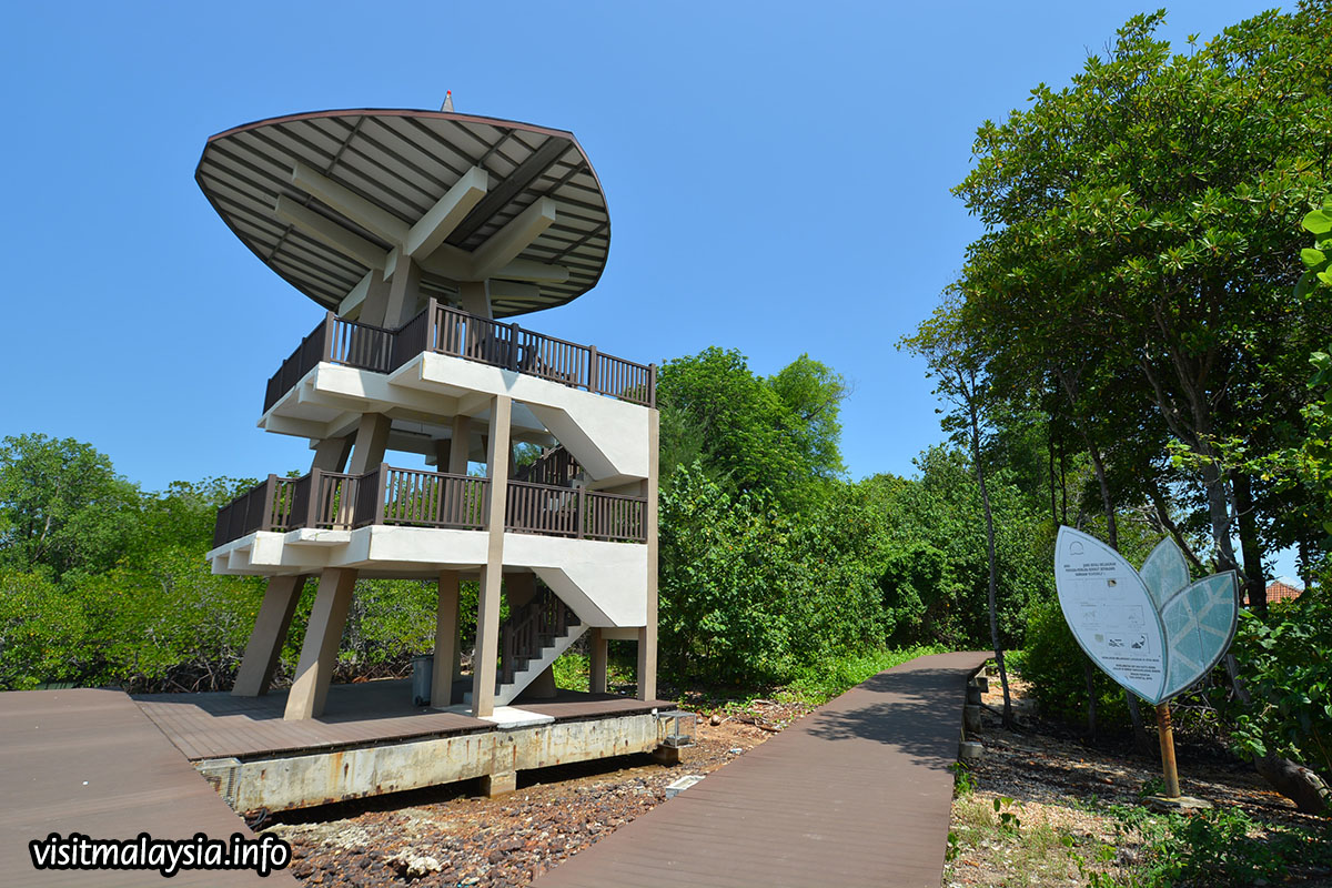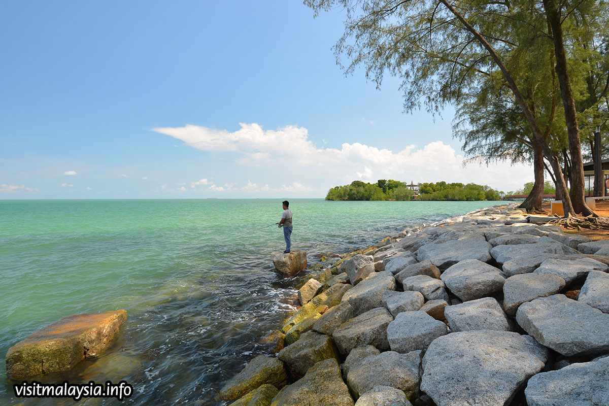 The cape also links to a small mangrove island called 'Pulau Burung' by a wooden bridge, although visitors may stroll there on foot at low tide. A boardwalk on the island leads to a platform where a watchtower provides a panoramic view of PD's coastline. Some of the popular activities here include water sports, boating, fishing, camping and berbeques.