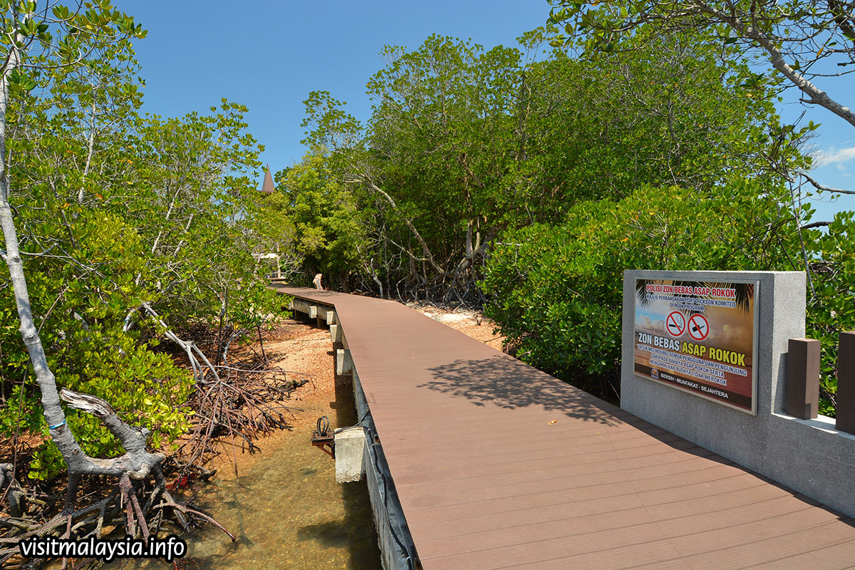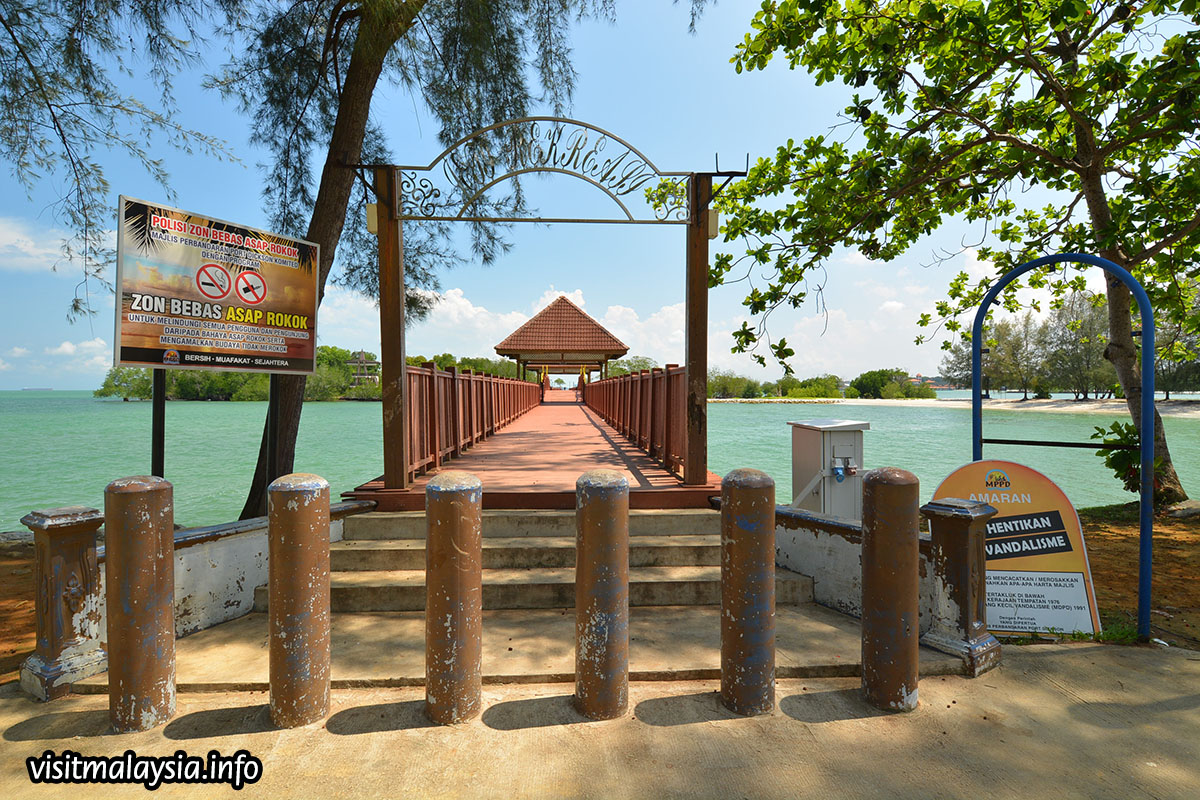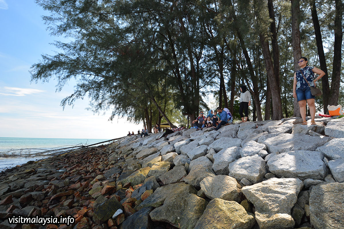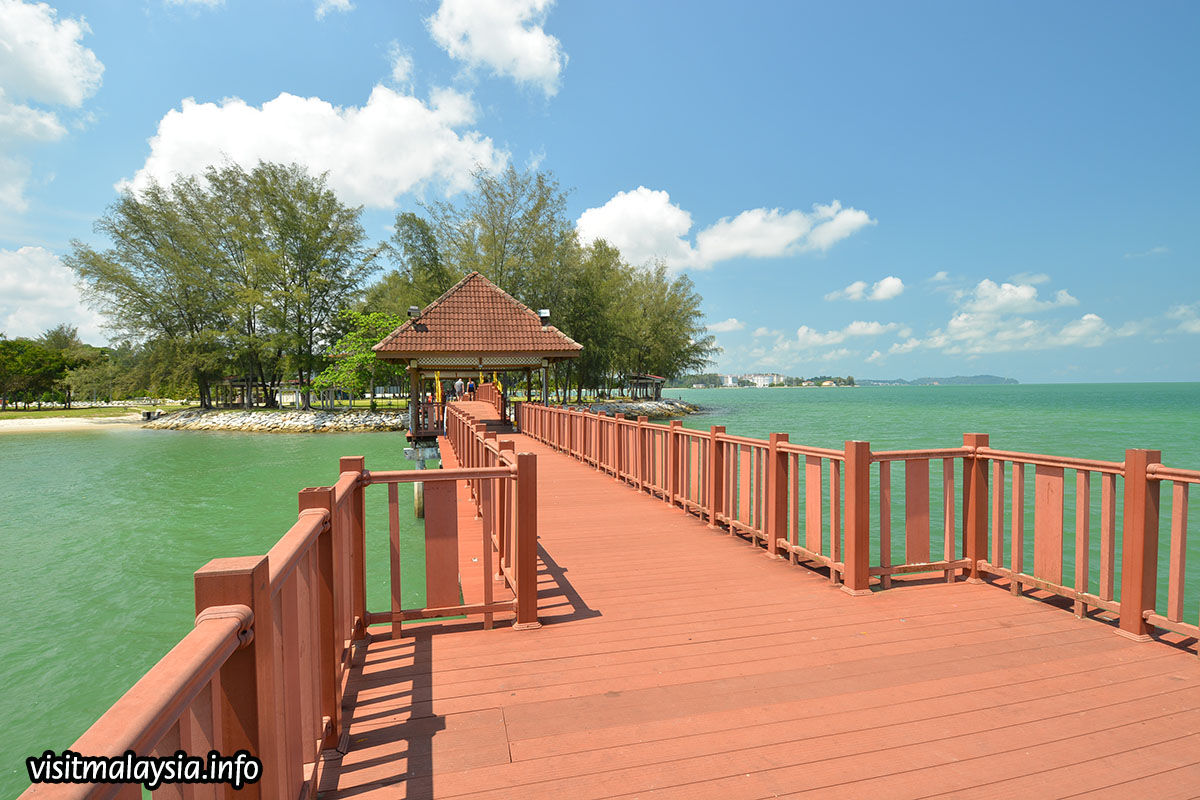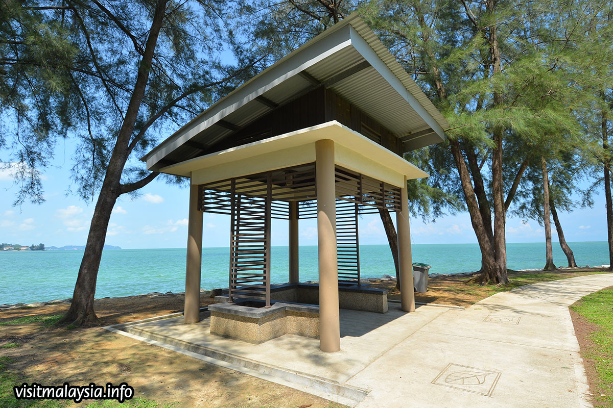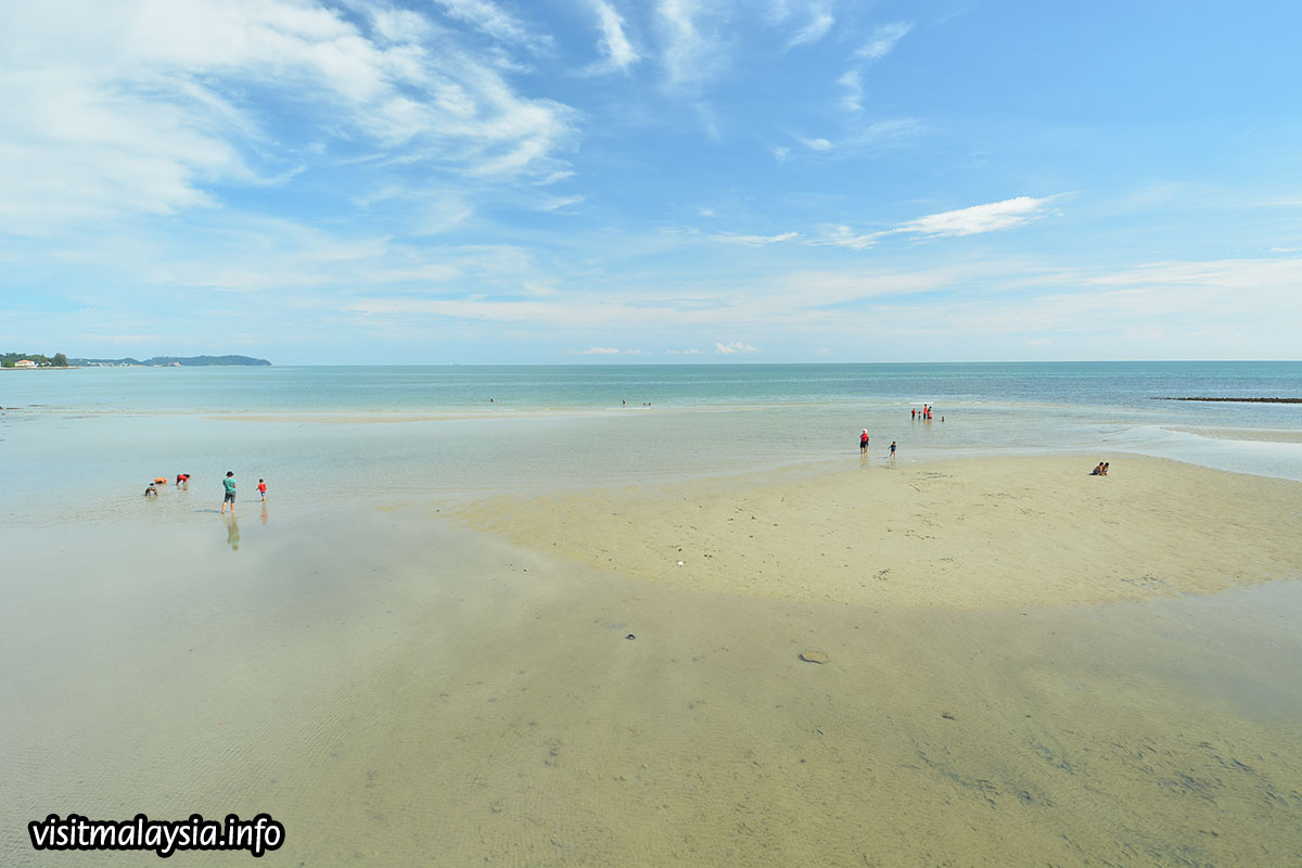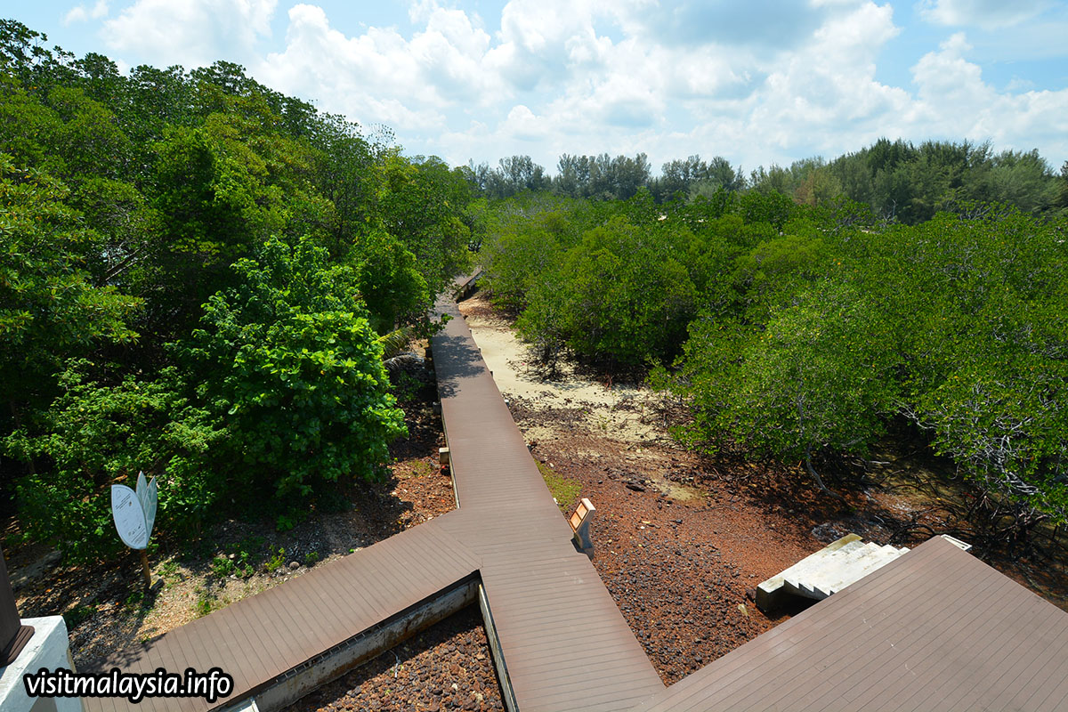 The cape also links to a small mangrove island called 'Pulau Burung' by a wooden bridge, although visitors may stroll there on foot at low tide. A boardwalk on the island leads to a platform where a watchtower provides a panoramic view of PD's coastline. Some of the popular activities here include water sports, boating, fishing, camping and berbeques.