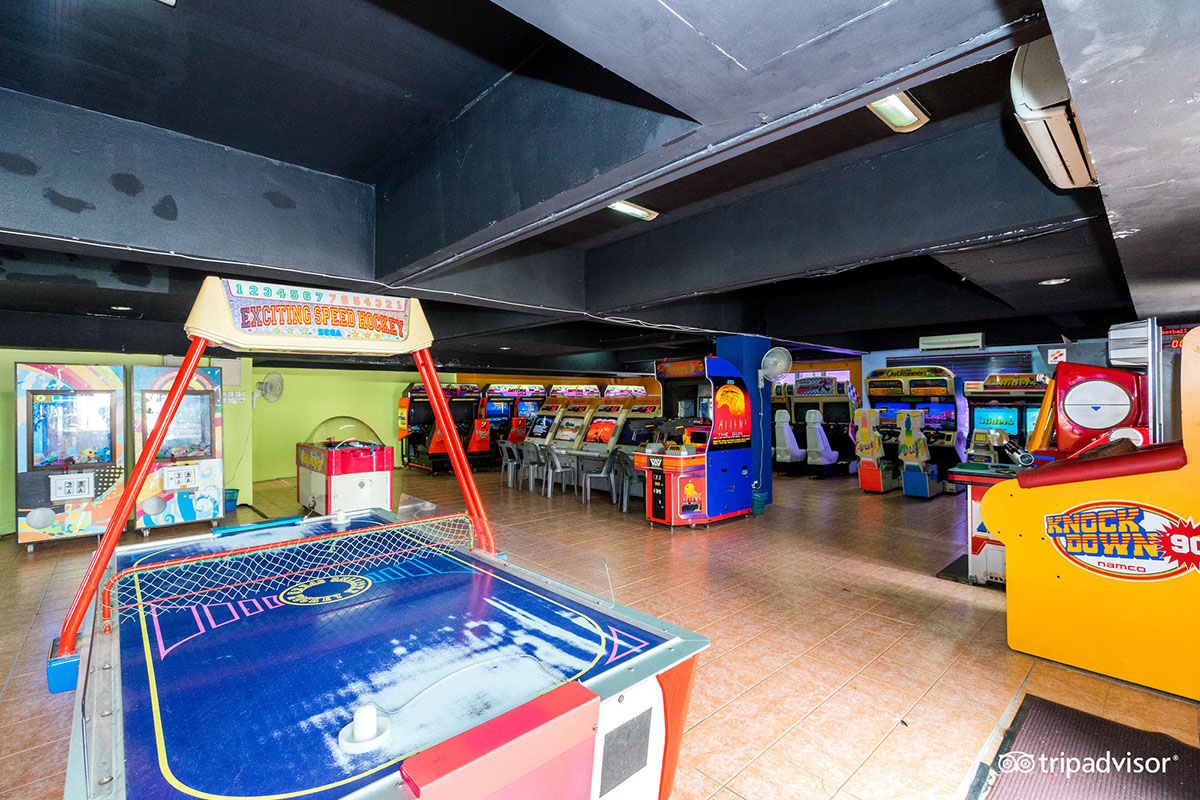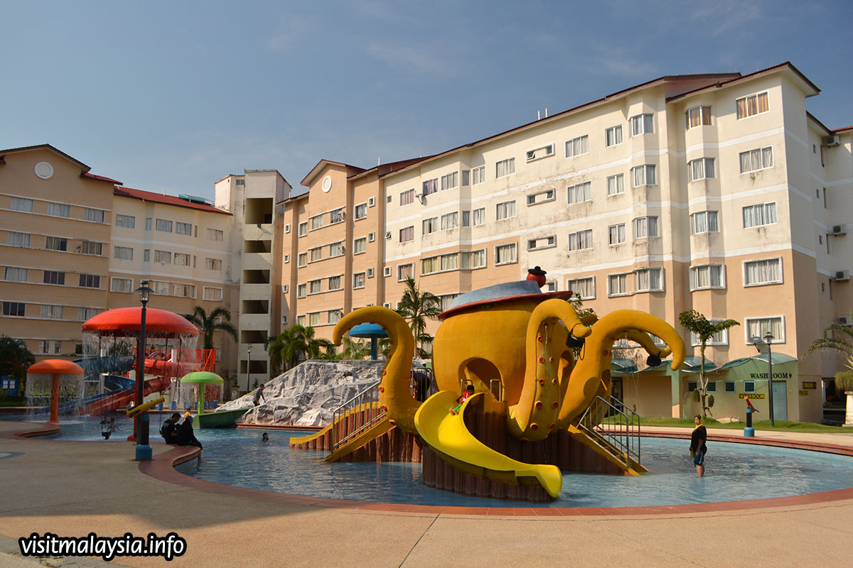 The large water park is also open to public with a small ticket fee, comprising pools, slides and wet playgrounds spread around an artifical beach lined with coconut trees. Located opposite Palm Springs Resort, the entrance can be reached from along the main road at left at Pasir Panjang.