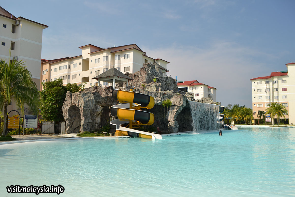 Caribbean Resort (formerly Primaland/Tiara Beach) is an integrated hotel complex spread over 23 acres of land, housing a series of apartment blocks and a water park with artifical beach zone. Located at 13th mile of Port Dickson, this 'inland sea resort' provides budget family accommodation with an incredibly large range of conference facilities, including a ballroom that seats 2,000 pax.