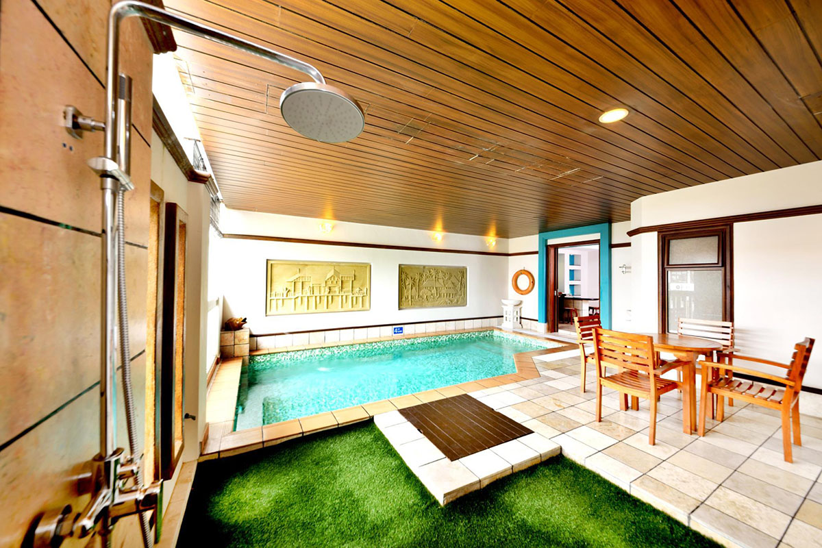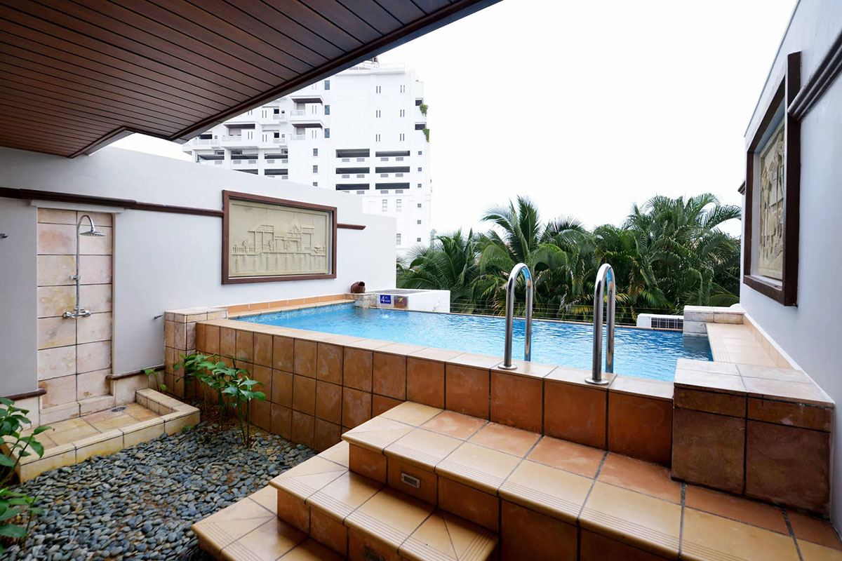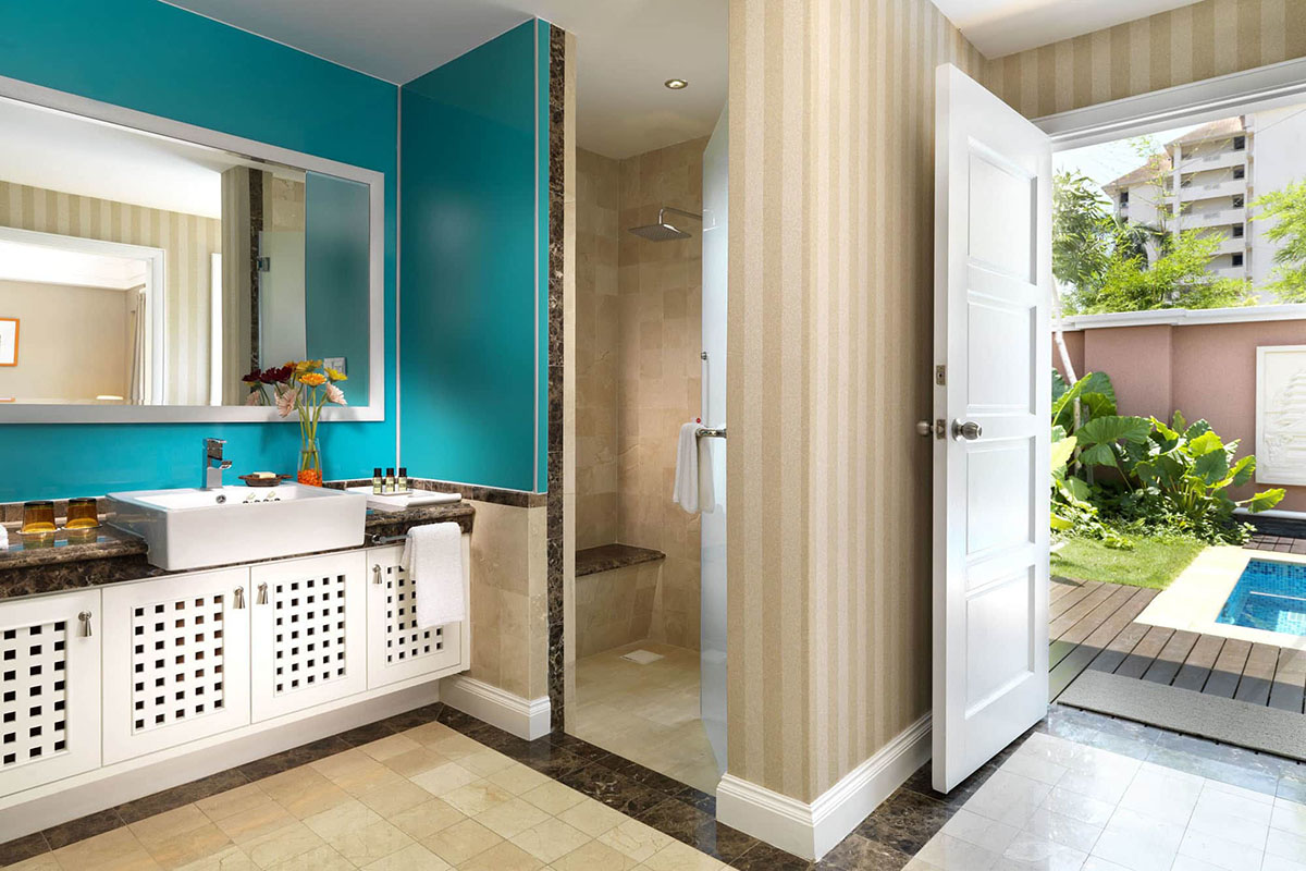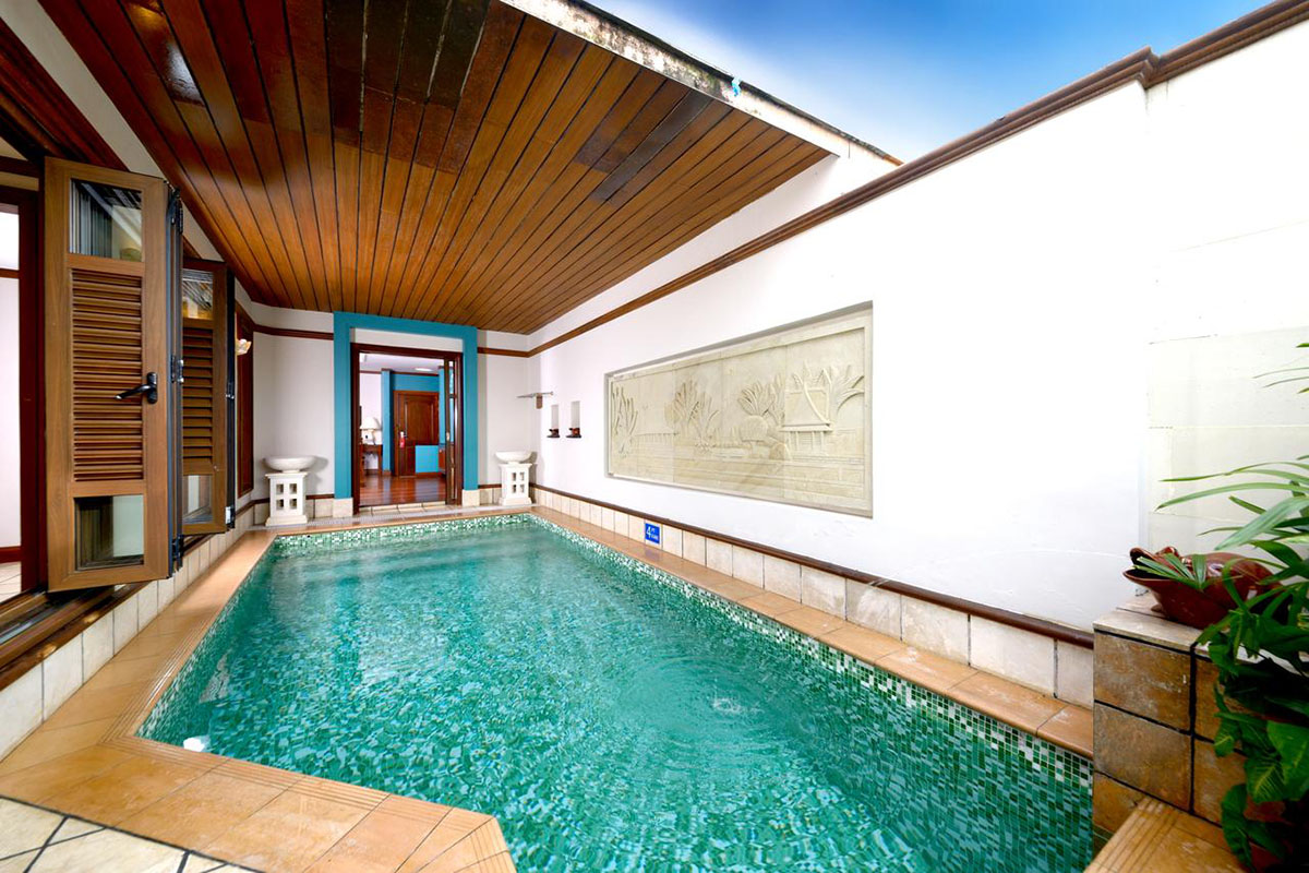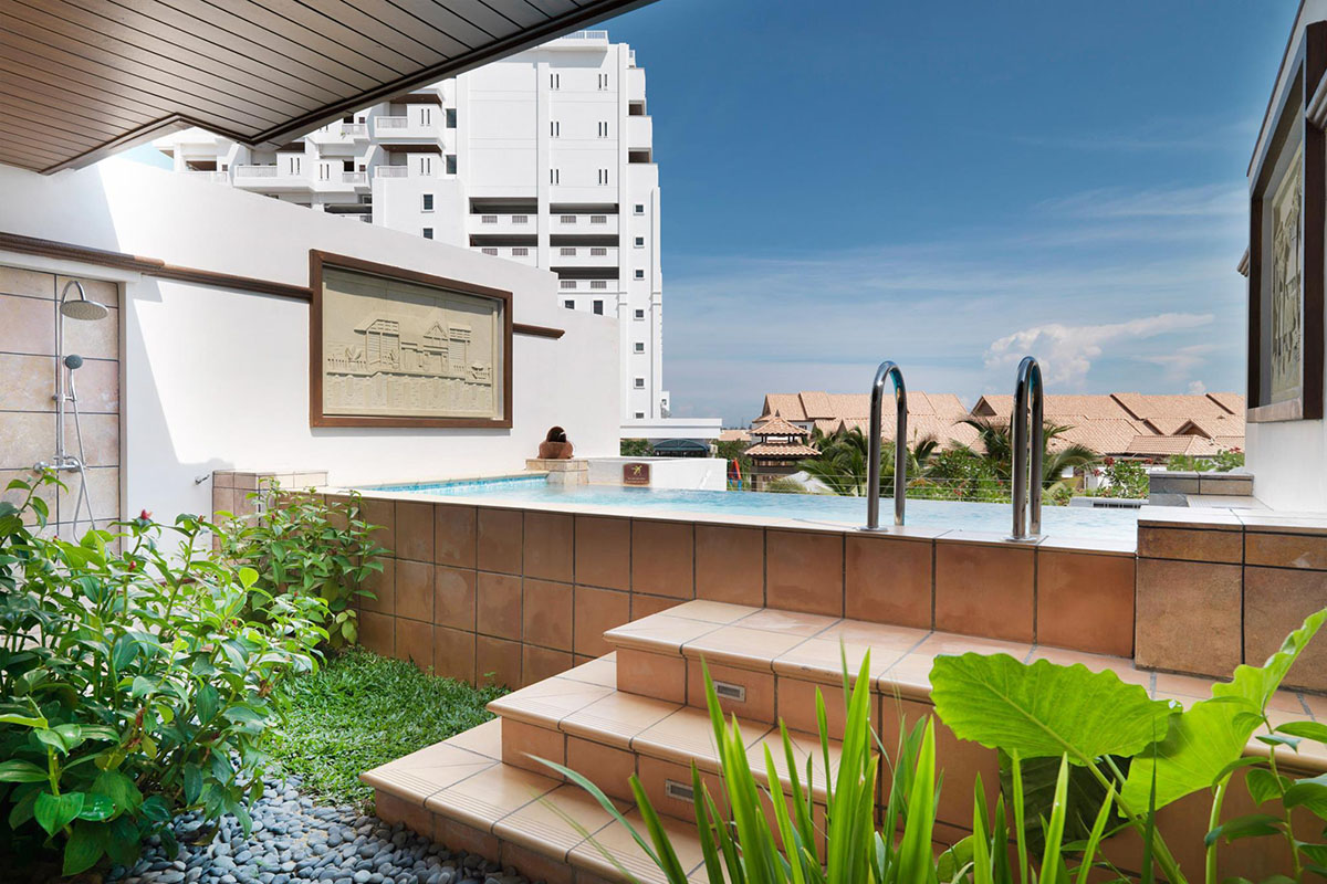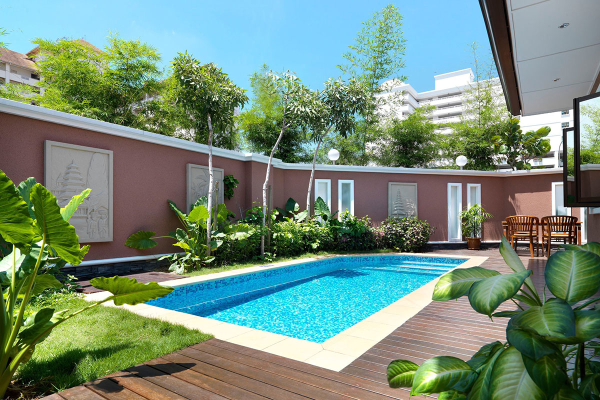 A tower block provides additional sky living accommodation - each room also with the private pool feature but suspended on semi-open balcony decks that open out to a view of sea. Finally, a garden wing nestled at the back provides cosy suite rooms housed in contemporary chalets, again with enclosed, private pools.