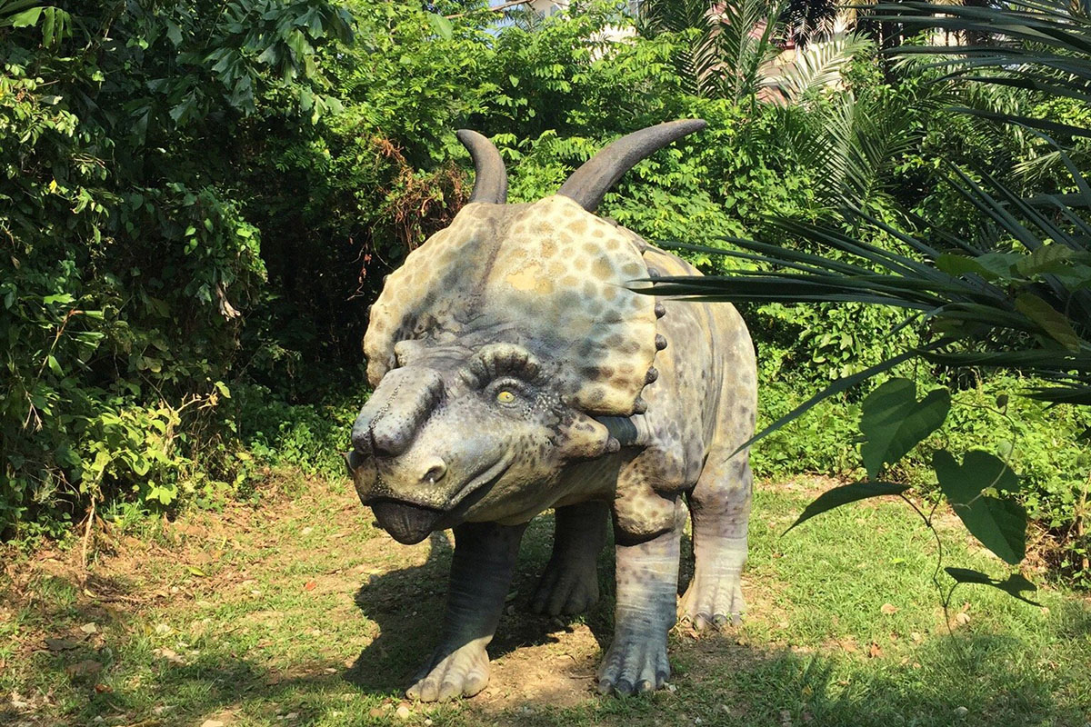 The resort of the 20-acre grounds are dedicated to a jungle walk with dinosaur statues, and extreme park activities including paintball, ATV-riding and archery. A restaurant on the premises serves cuisine made from ostrich meat, including satay. Open daily from morning till evening, a ticket fee is charged.