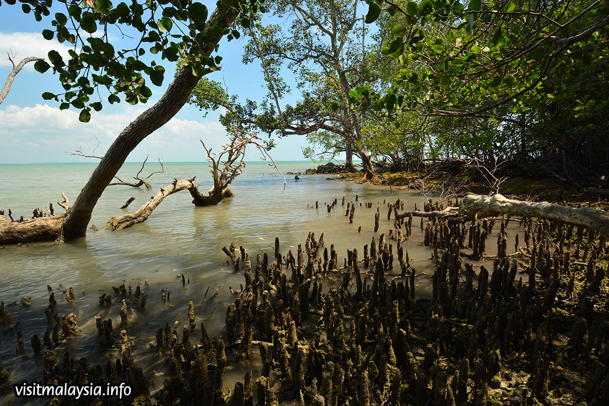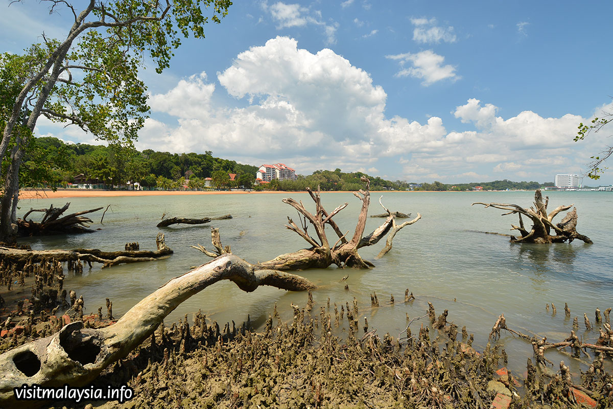The waters are rather murky due to the muddy sea bed, but it's still clean, with a beautiful view of the rainforest and mangroves at its eastern edge. Two family hotels provide apartment accommodation at Pantai Cermin - Casa Rachado and Permaisuri Resort, while PNB Ilham Resort is at neighbouring Blue Lagoon.