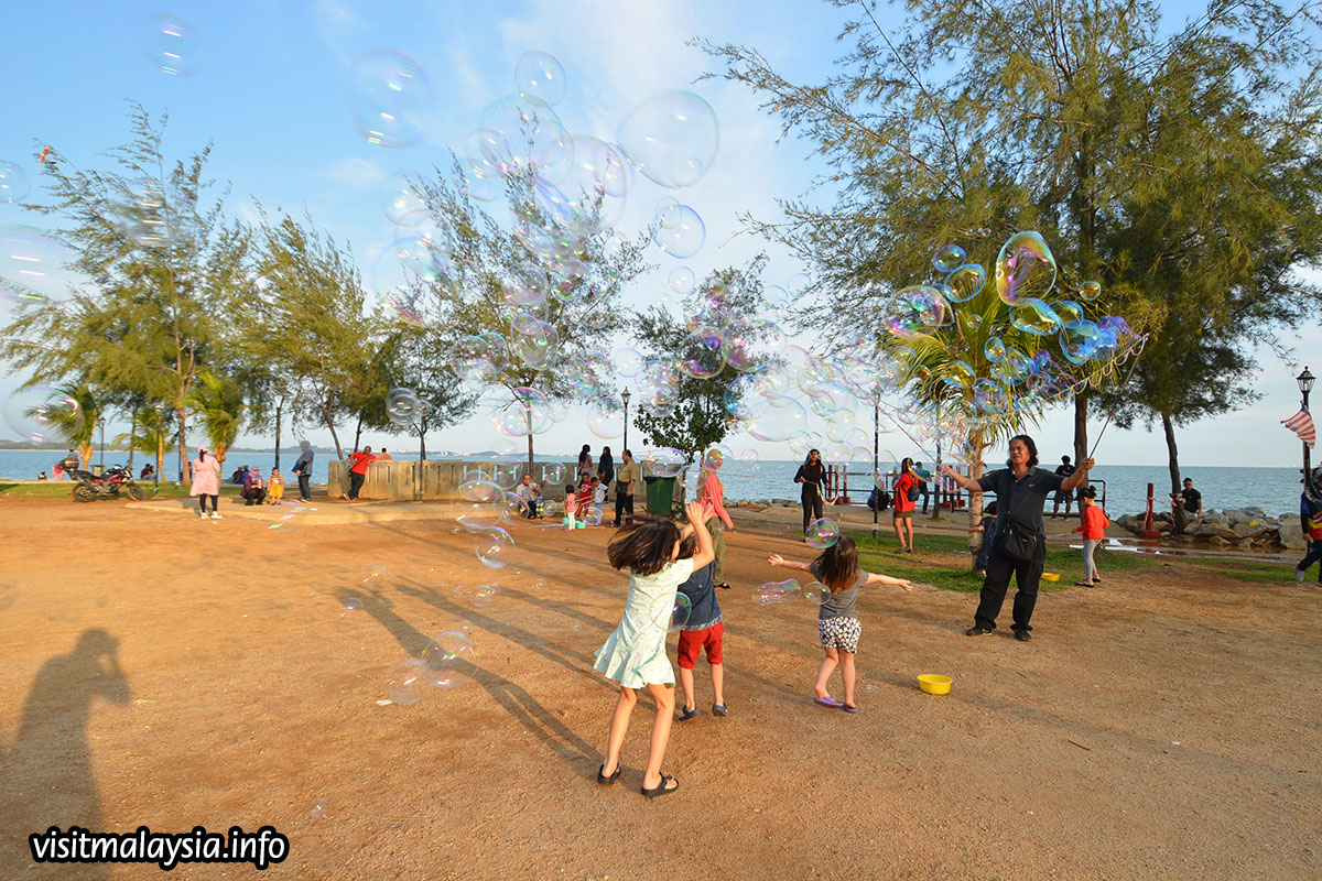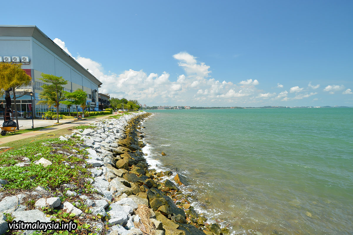 PD waterfront is an esplanade development at Port Dickson's town center, facing the sea off Pulau Arang. A popular spot in the evening for families to fly kites, the PD Waterfront project is also a designated entertainment, dining and shopping zone, lined with contemporary shoplots along a seafront boulevard, with recreational parks fronting the promenade walk.
