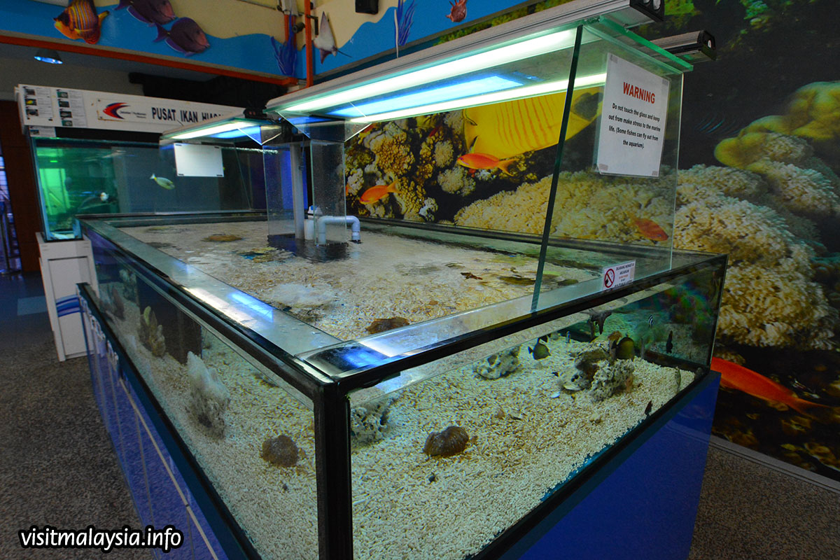 Pusat Ikan Hiasan, or Ornamental Fish Center, is an aquarium and marine conservation facility at Teluk Kemang managed by Malaysia Fisheries Department. Open to public daily from 10am till 4pm, the center showcases a huge collection of popular marine fish, corals and other sea creatures in the aquarium trade. The center also raises and displays sea turtles from hatchlings to adulthood. Admission is free.