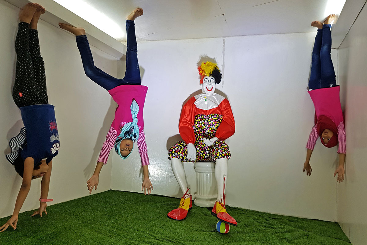 Rumah Terbalik Upside Down Gallery is a trick art museum at Jalan Perdan off Teluk Kemang, located near PD Ostrich Farm. Nestled in a row of shophouses, the gallery showcases typical house features such as bedrooms, kitchen, living hall etc in an inverted position, which results in hilarious photo effects. Also, there are other exhibits that utilise perspective and angles to create 3D trick effects. Open daily from 10am till 8pm, a ticket fee is charged.