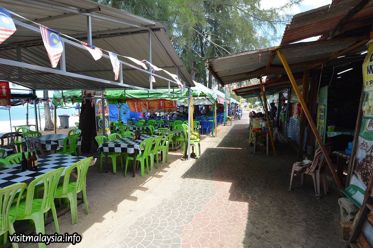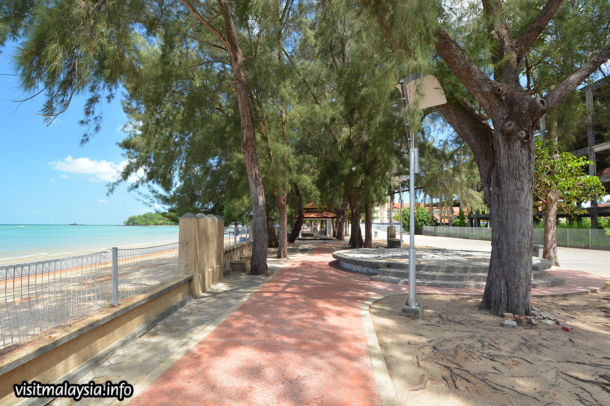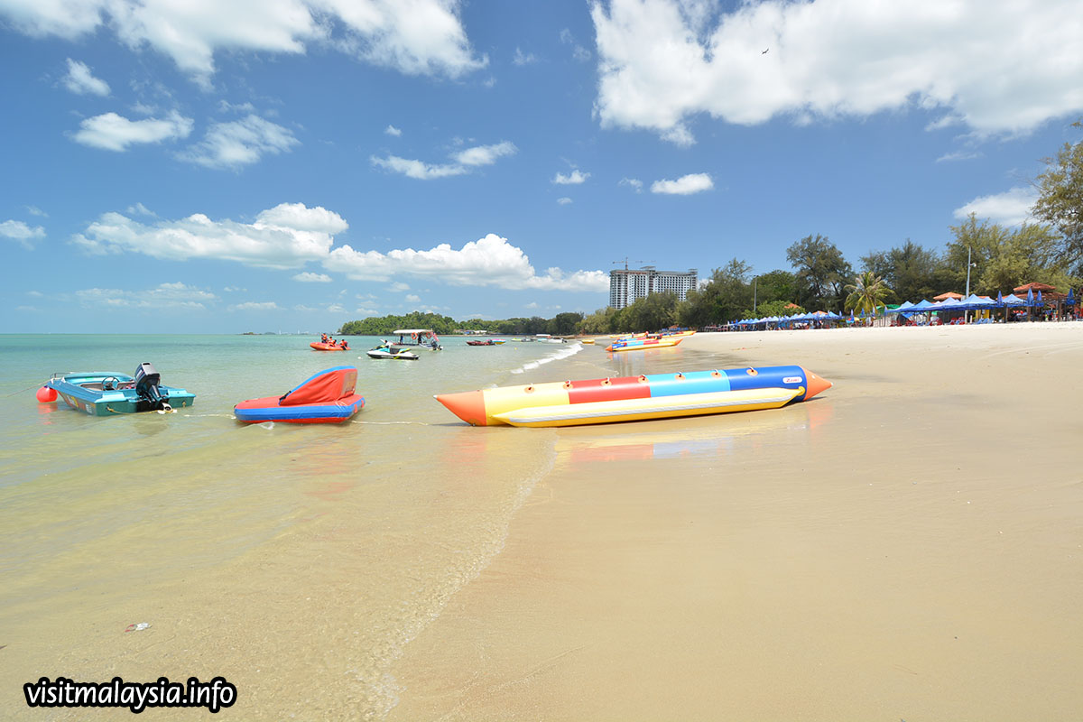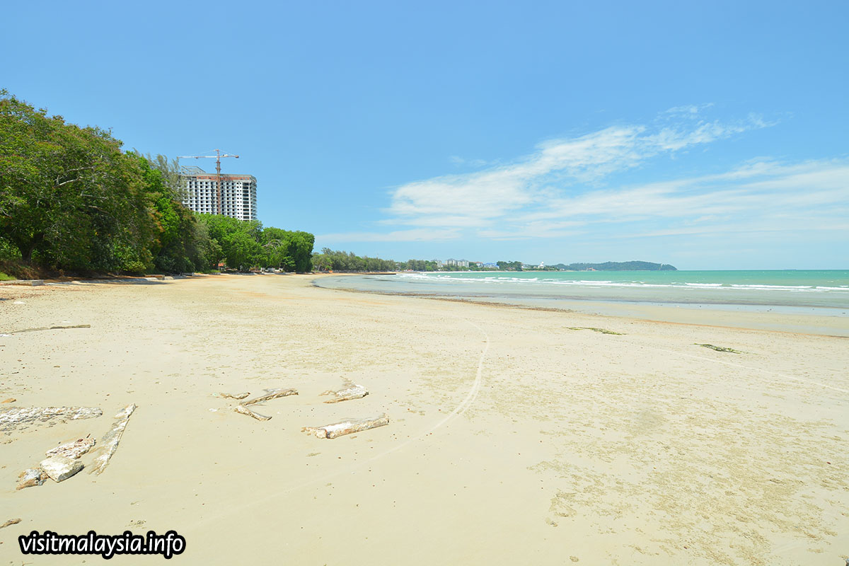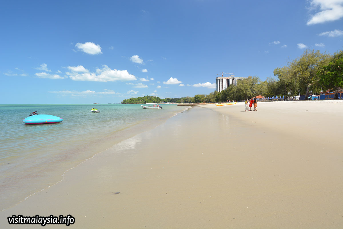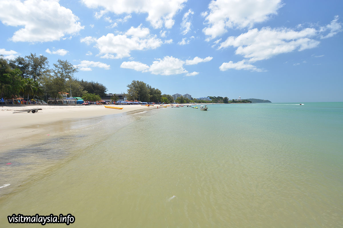 The shoreline is spacious and draped with fine sand, varying between cream and ochre-coloured hues while the immediate sea waters play host to a variety of motorised water sports. A large recreational zone along the beachfront provides gazebos, paved footpaths, car parks, walkways, shower facilities and even a large square with public stage. Souvenir shops, hawker stalls and restaurants comprise the rest.