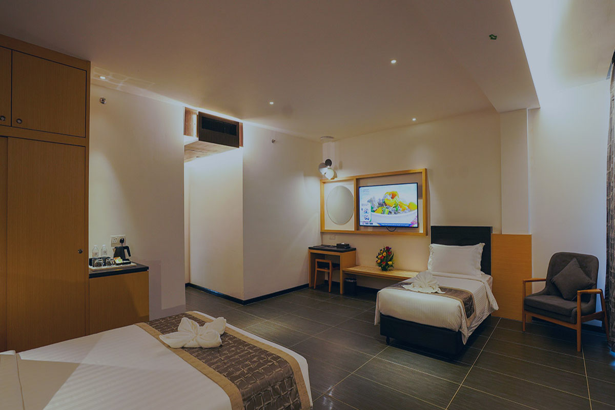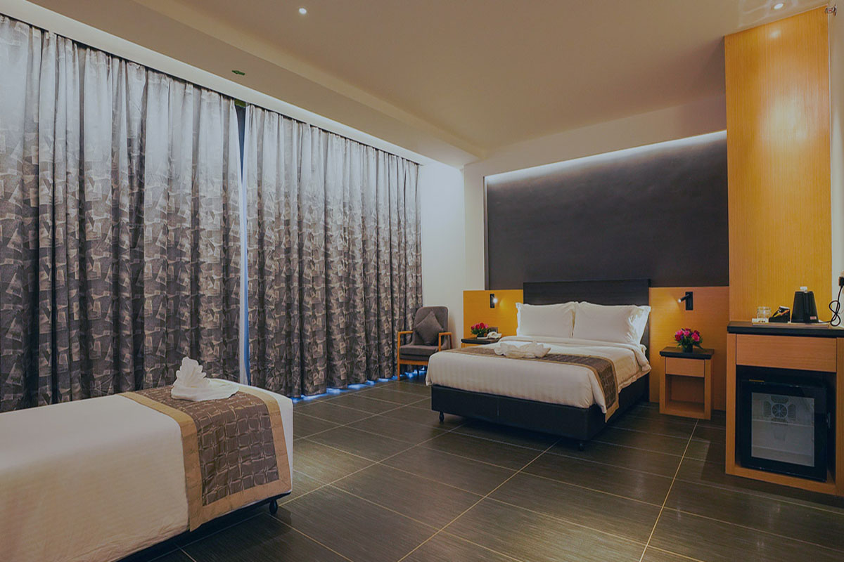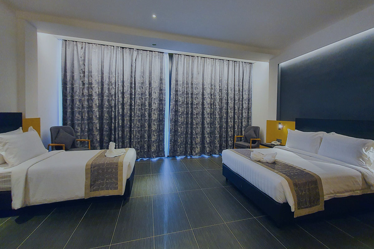 TSR Seafront Hotel is a family resort at Teluk Kemang, the popular 8th mile beach spot of Port Dickson. Nestled near the beachfront, the hotel provides contemporary accommodation equipped with air-conditioning, attached bathrooms with hot water shower, LED television with satellite channels and free wifi Internet access. The hotel features a small but fun water theme park that caters for children. Other facilities include a ballroom, restaurant, mini cinema hall and cafe lounge.