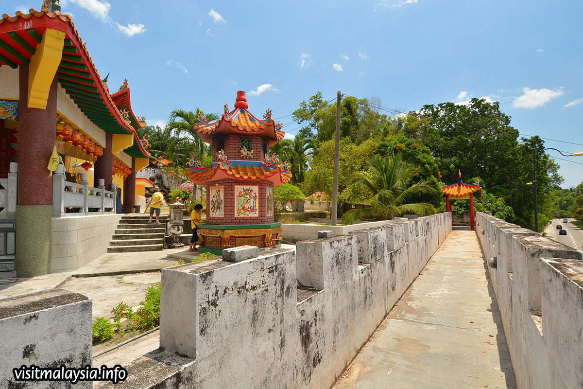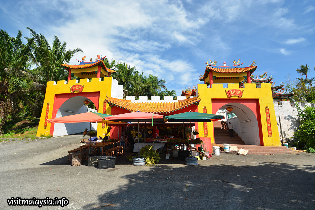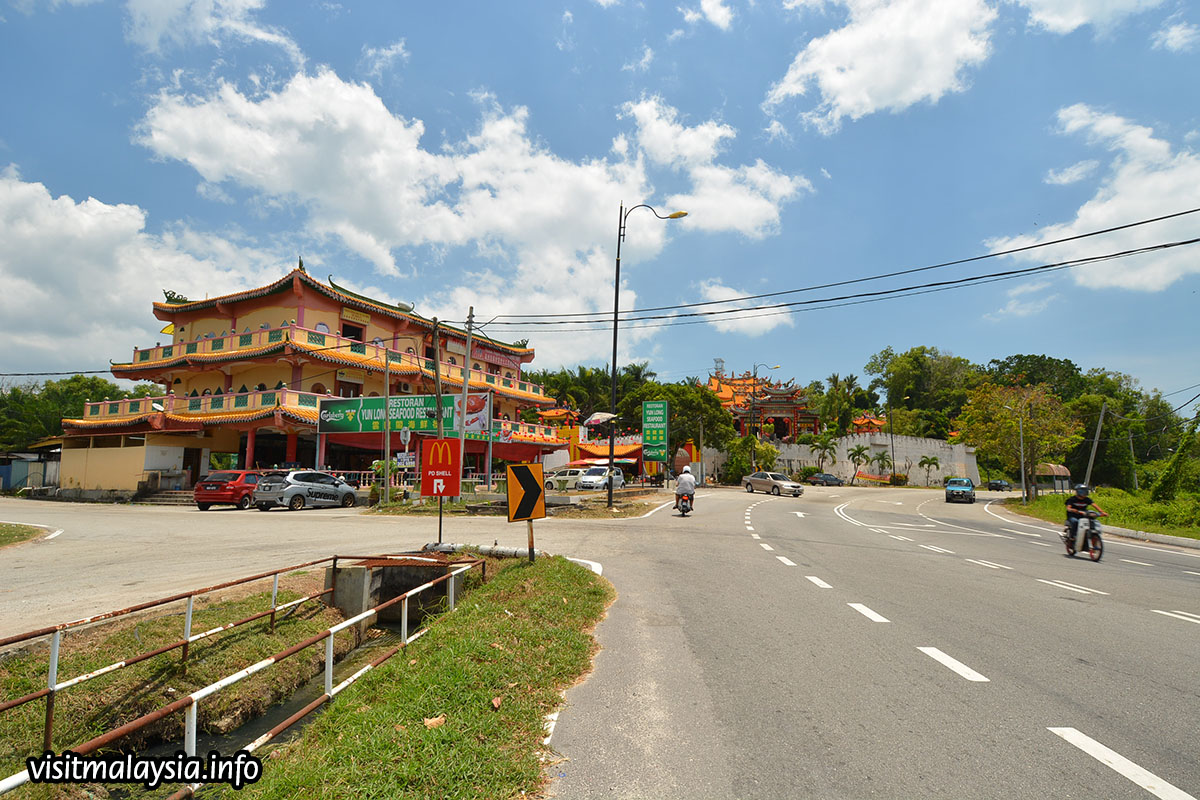 Wan Loong Temple is located along the 7th mile of the Port Dickson coastal road, just opposite the PD World Marina Resort. This Chinese temple, with its opulent architecture and imposing fortress walls, is hard to miss at left along the main road, if coming south towards Malacca from PD town.